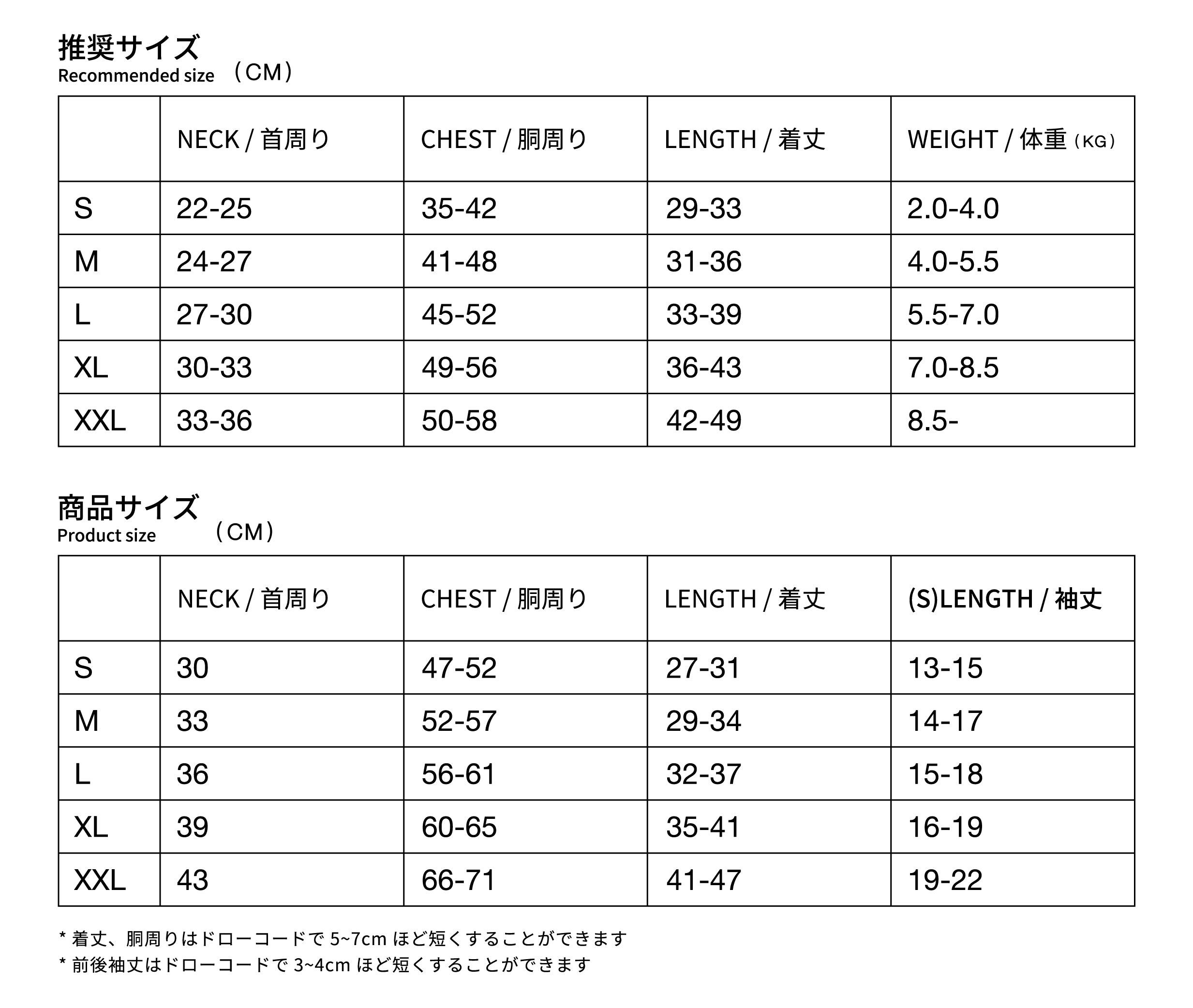 着丈・袖丈(4カ所)・胴回りの7カ所がドローコードにより調整が可能。愛犬の体のサイズや動きの特徴に合わせてフィット感を微調節できます。