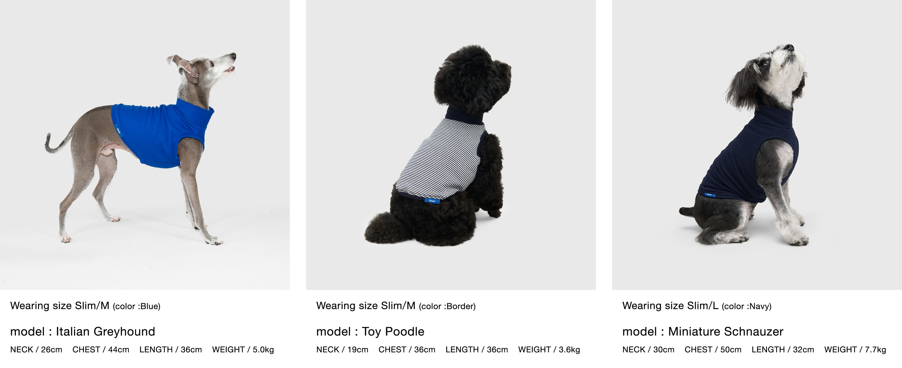 どんな環境下でもアクティブに、そして気軽に着用できる2枚入りのドッグパックTシャツ。サイズは様々なサイズの犬種に対応できるよう、スタンダードの全犬種用(S~XO)と細身のハウンド用(S ~XXL)の2パターン全11サイズを用意。ウェアが初めての場合でもよりアクティブに活動しやすく、着丈はショート丈でサイドから見ても美しいラインが出るようにパターン設計しています。