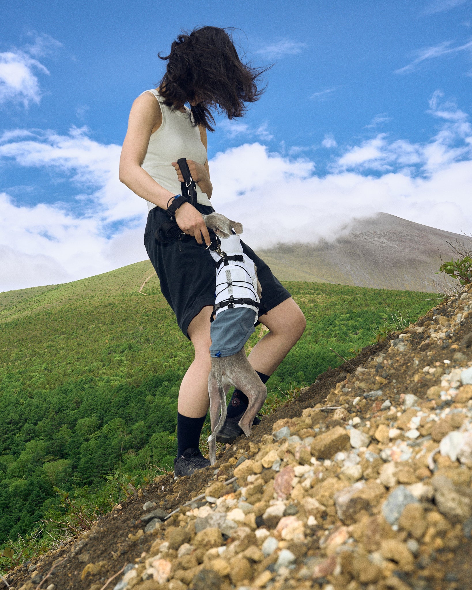 朝の公園散歩から週末のアウトドアアクティビティまで、オールシーズンどんなシーンでも愛犬のアクティビティをスマートにサポートするハイブリッドギア。マットな質感の表地は、撥水性を備え汚れや水分がつきにくく、裏地のダブルラッセルメッシュは3Dクッションと高い通気性で、長時間の着用でもムレを感じさせません。