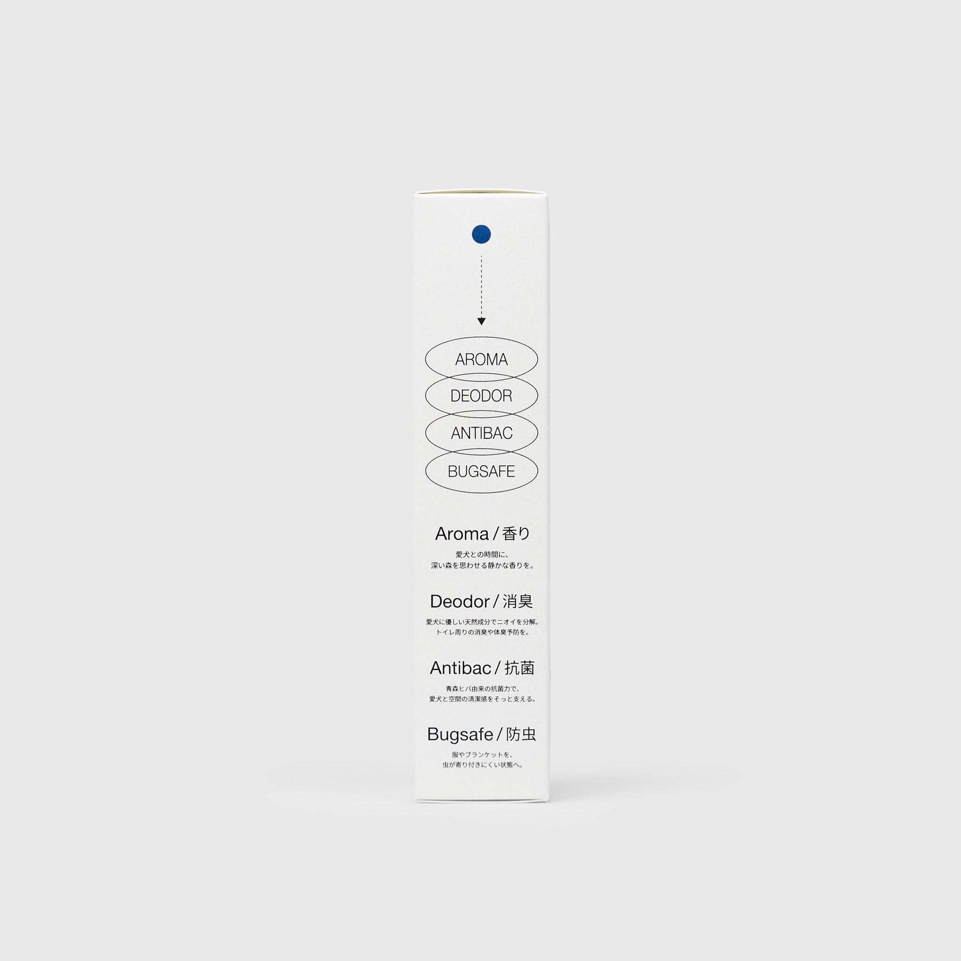 静かな森の香りを愛犬と共有する。喧騒を遮断し、精神的にリラックスできる香りを。ヒバの香りが深く心地よい休息時間へと変えていきます。