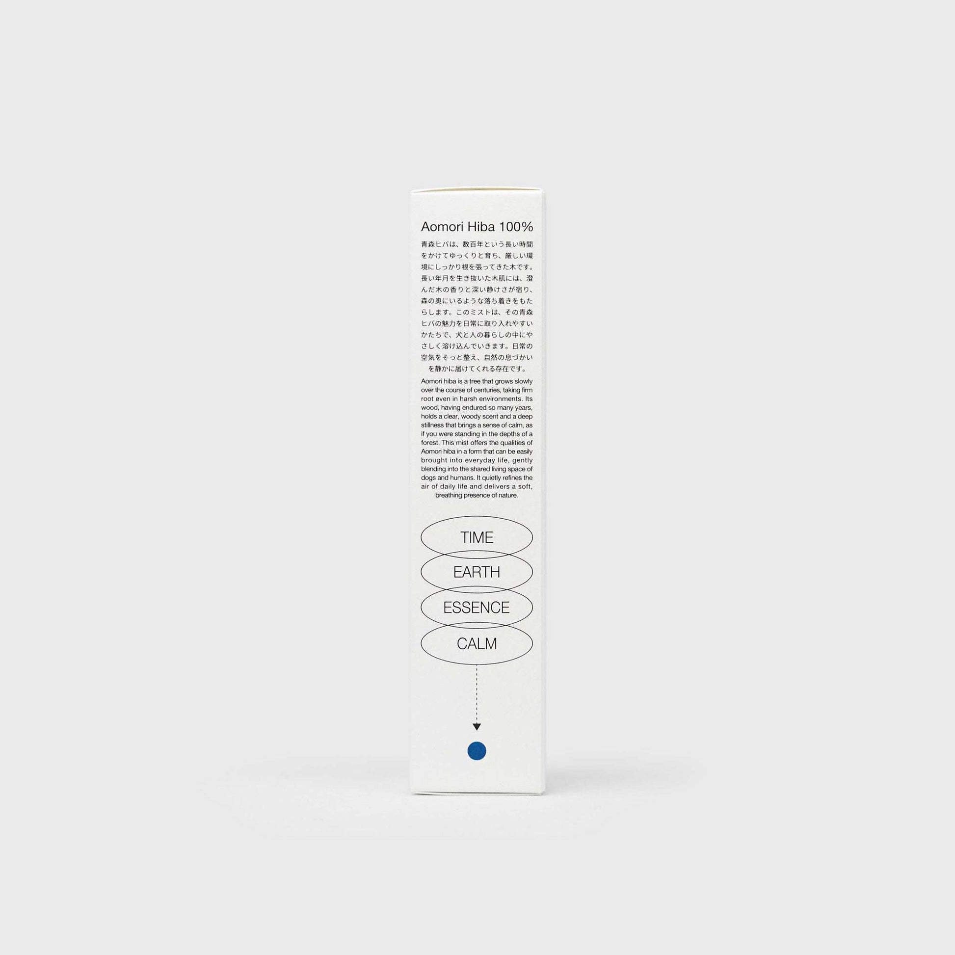 ヒバが成木になるまでの200年以上という圧倒的な時間(TIME)。青森の厳しい風雪が育てたその「大地の記憶(EARTH)」は、化学合成ではなく地球そのものから生まれた純度の高い強さです。水蒸気蒸留というプロセスを経て抽出された、たったひとつの「生命のエッセンス(ESSENCE)」は、深く落ち着いた「凪」の状態を作り出し、愛犬と飼い主が同じ深さで呼吸をする静寂のひととき(CALM)をもたらします。