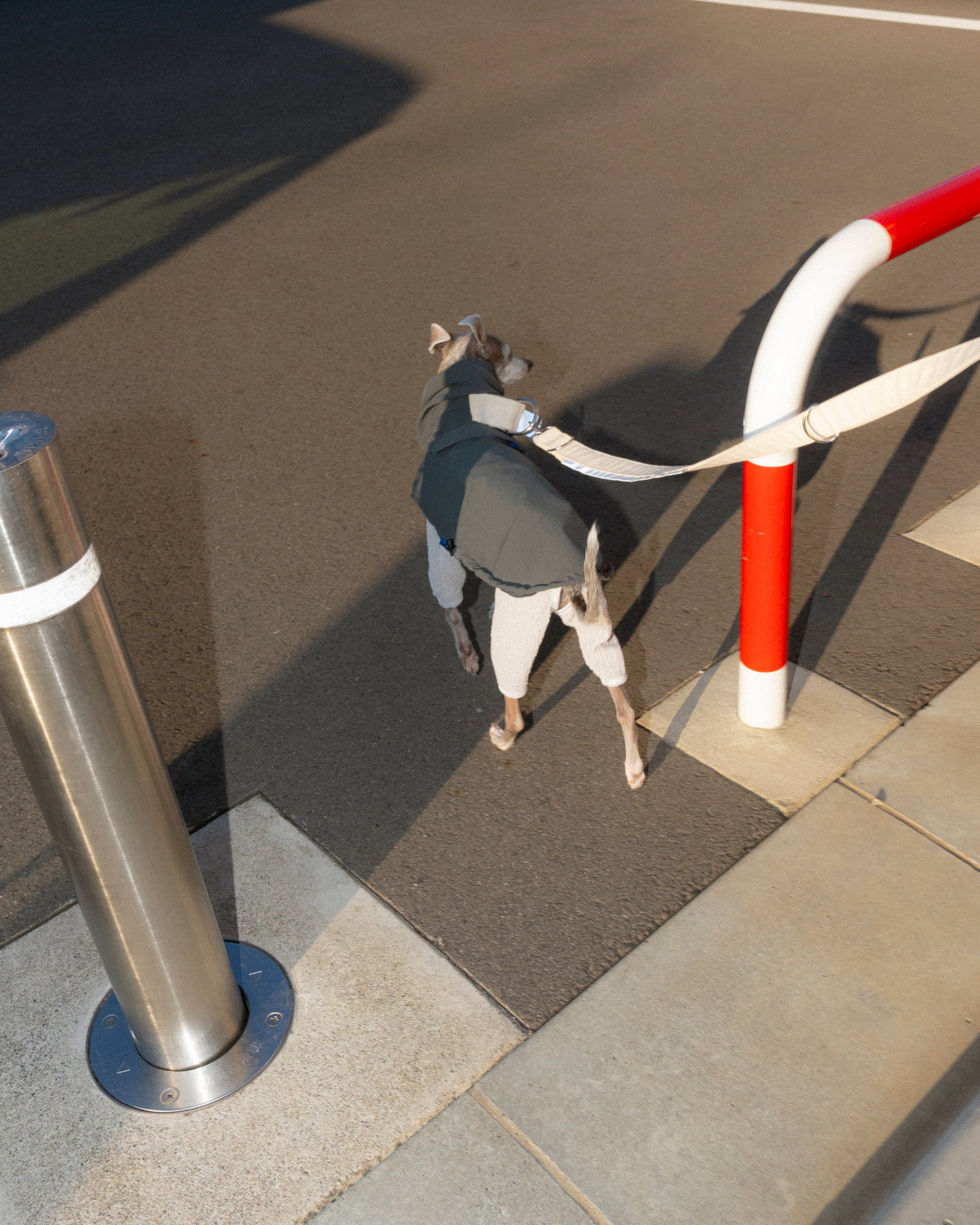 パッカブルで収納可能なオーバーシルエットのアノラックパーカー。ドッグウェアの視点からではなく、必要な機能とシチュエーションに絞って開発したドッグギアです。