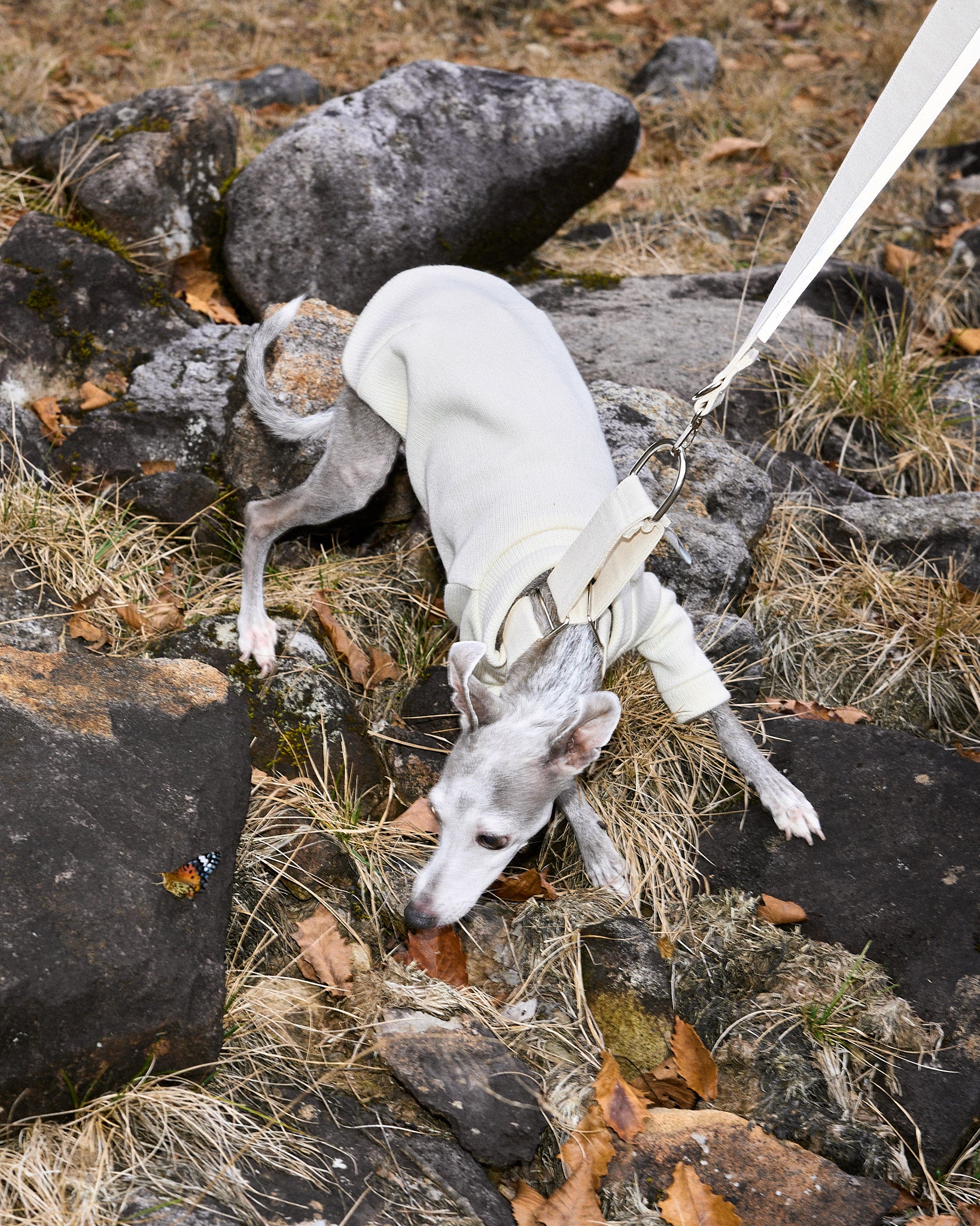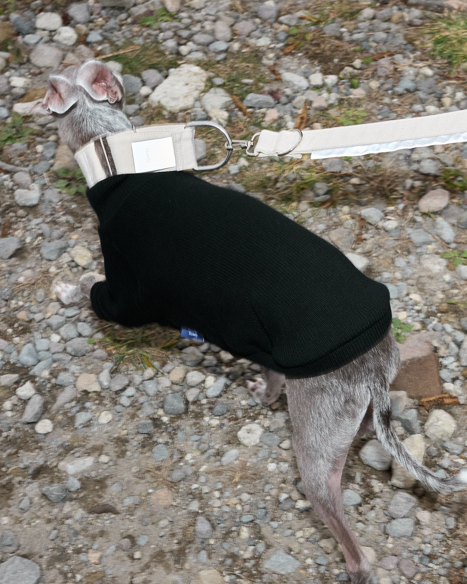 表はセーター、肌に触れる面はTシャツのようなやさしい肌触り。特殊な編み機で編まれる“QUARTER KNIT ”を採用し、愛犬が着用しやすいセーターを開発しました。コットン100%ならではのやわらかさでチクチク感がなく、敏感な犬にもやさしい着心地です。