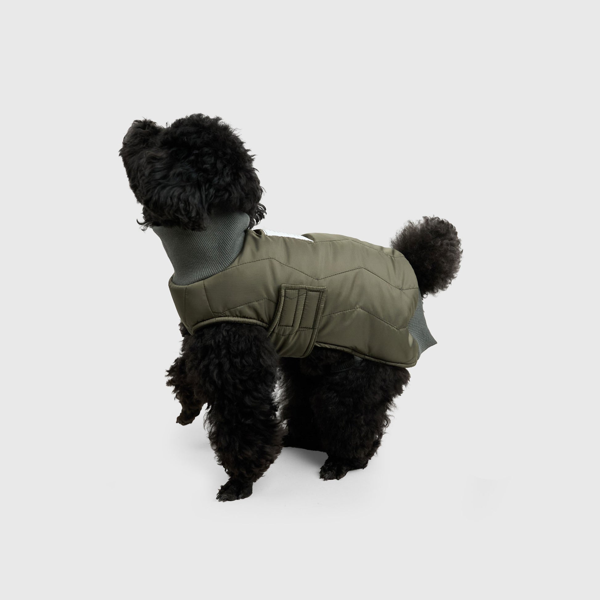 ドイツ軍のキルティングライナージャケットをソースに合理的なミリタリーの機能美を、犬の可動域に最適化したパターンワークとHowlyオリジナルのミルスペックで再解釈しました。