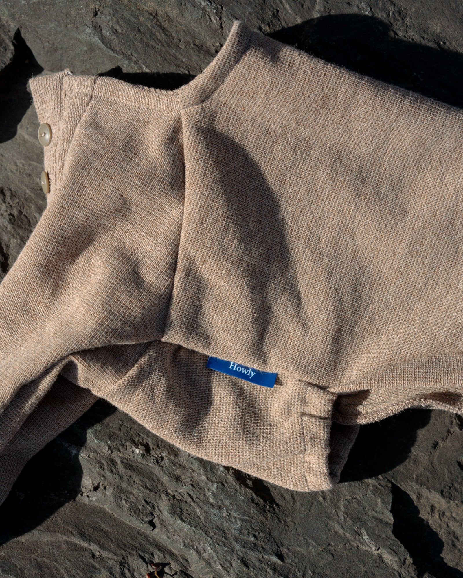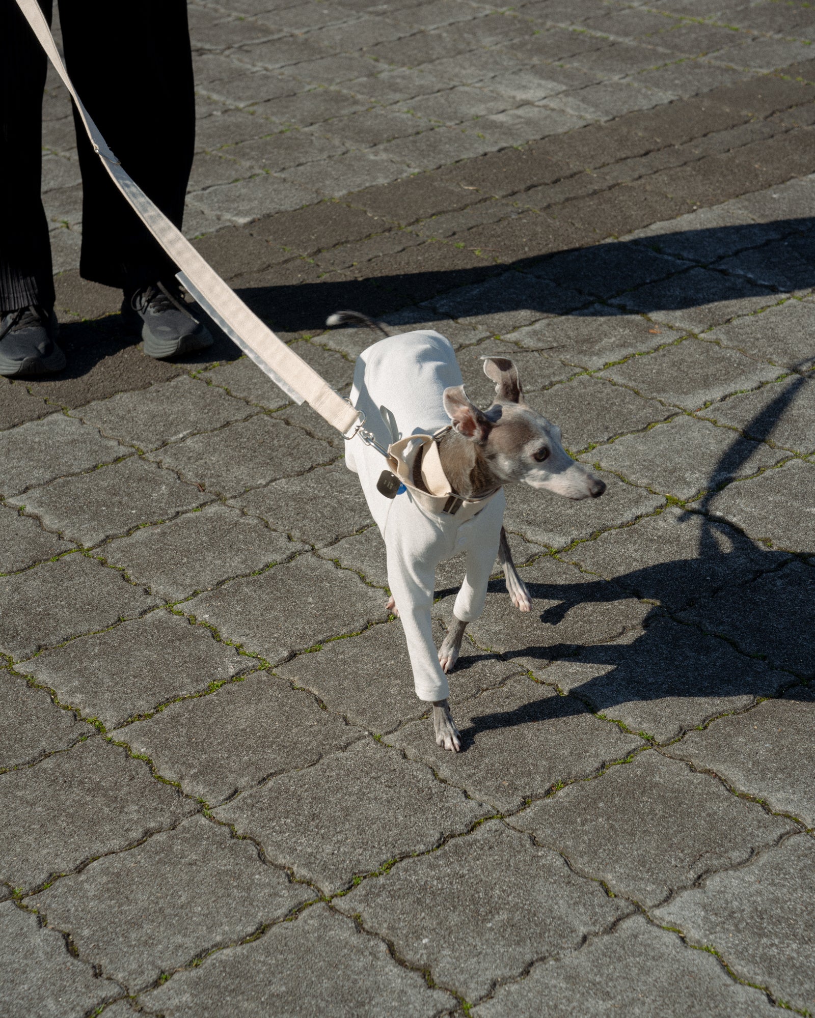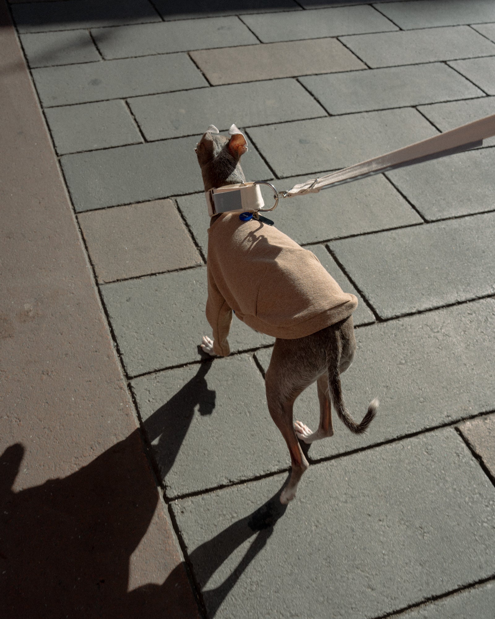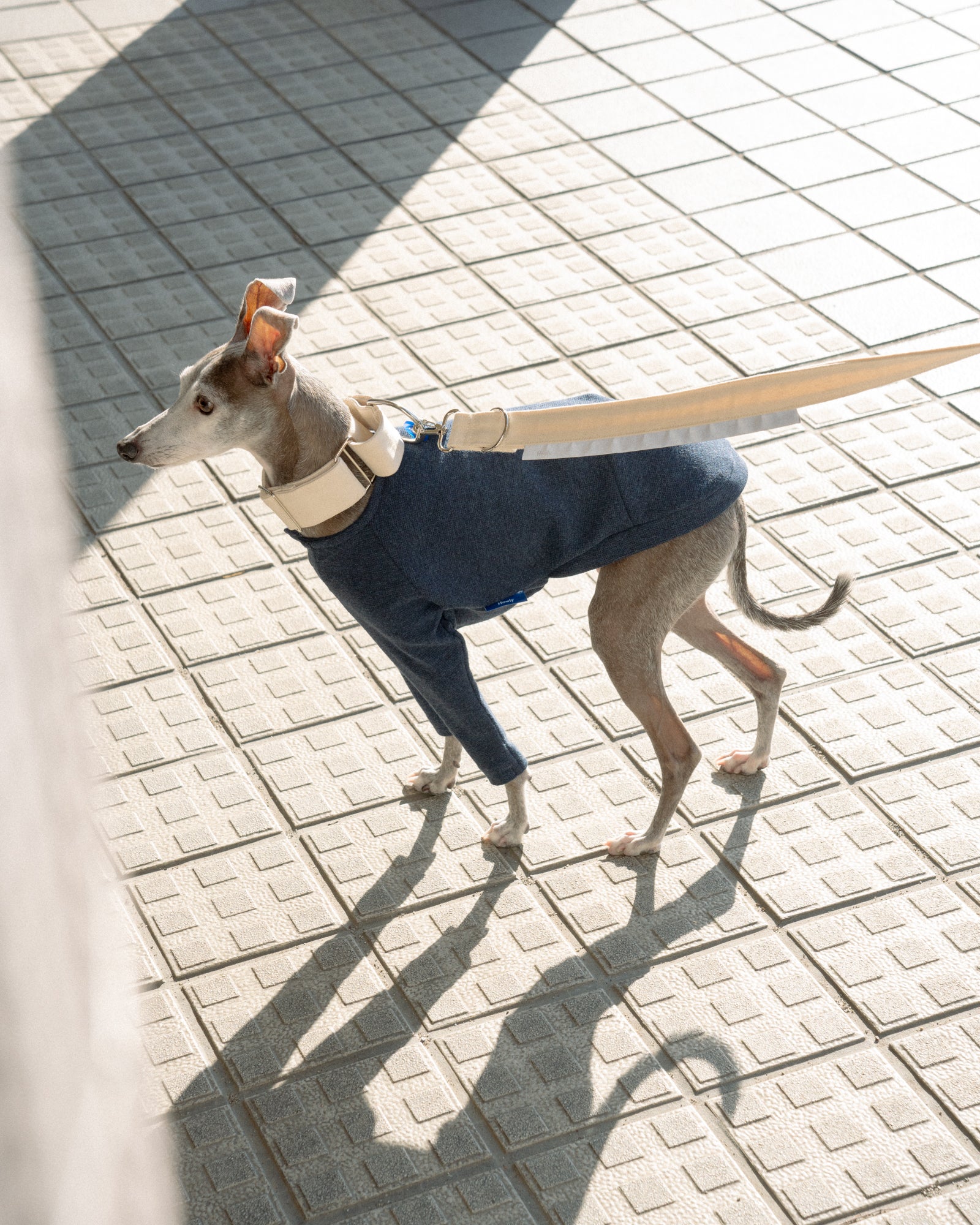 全ての季節で心地よく着用できるトップスを。SURFKNIT HENRYNECK TOPでは、BD糸(オープンエンド精紡機を用いた糸)を使用し、微表面変化のある組織で編み上げたサーフニット素材を採用しました。これによりさらっとした着心地とワッフル生地のような独特な目面を持つ美しいトップスに仕上がりました。首元はヘンリーネックを採用し、愛犬の着用感を向上しつつも、視覚的にも美しい細やかなディティールとなっています。前身頃にはゴムを入れ、胸回りのフィット感も作り出しています。ボディへダーツを入れることでハウンド犬の美しい体の曲線や細さに合わせた設計になっています。