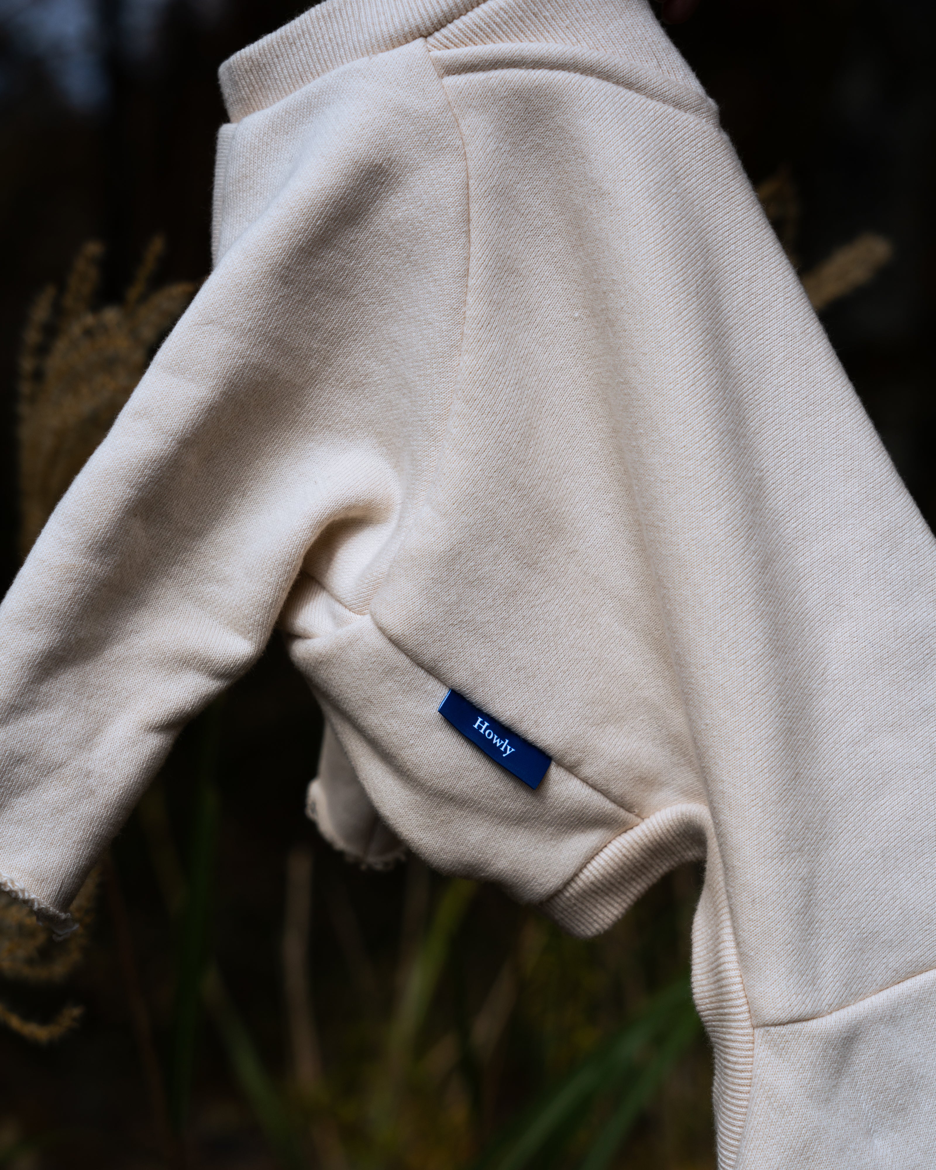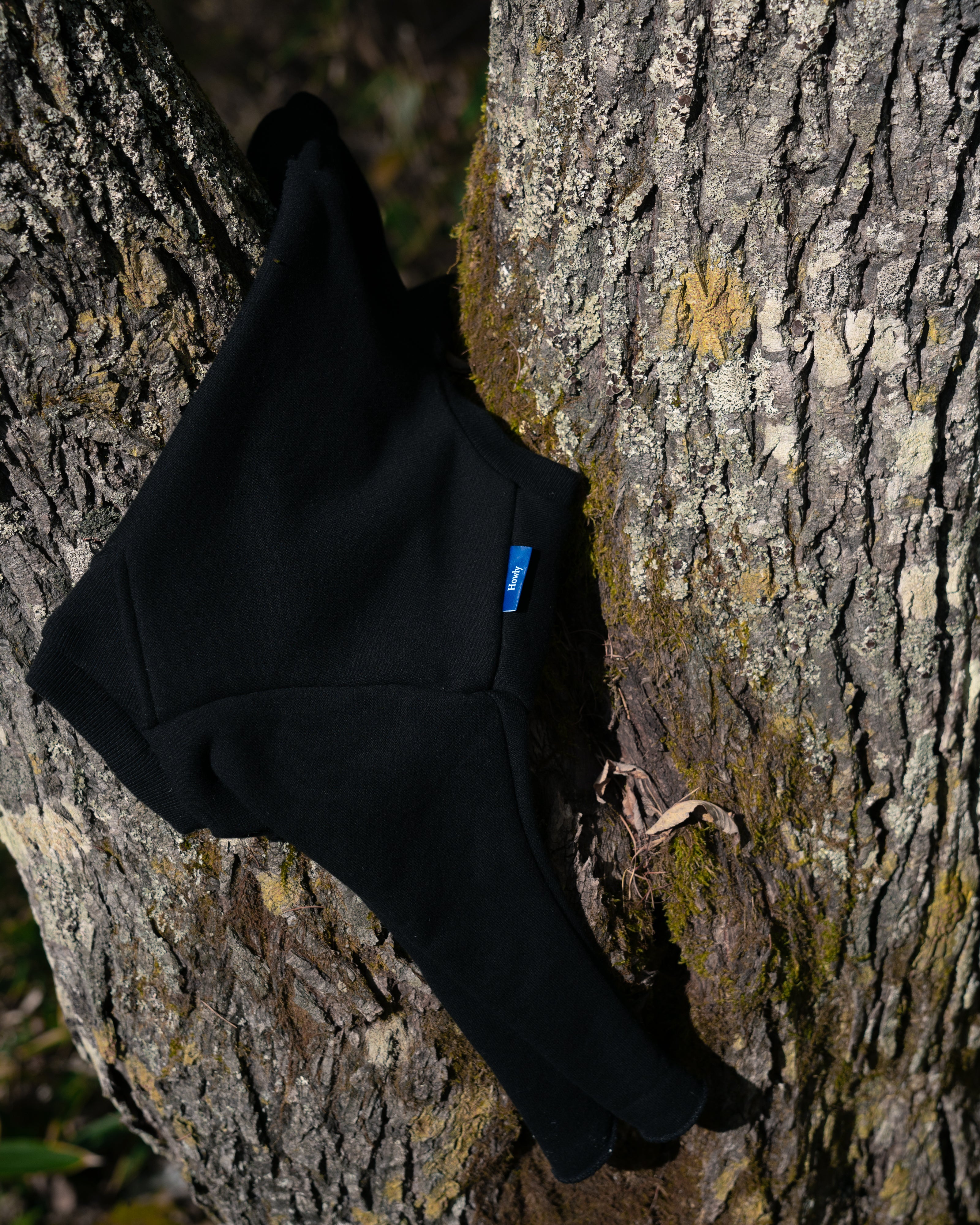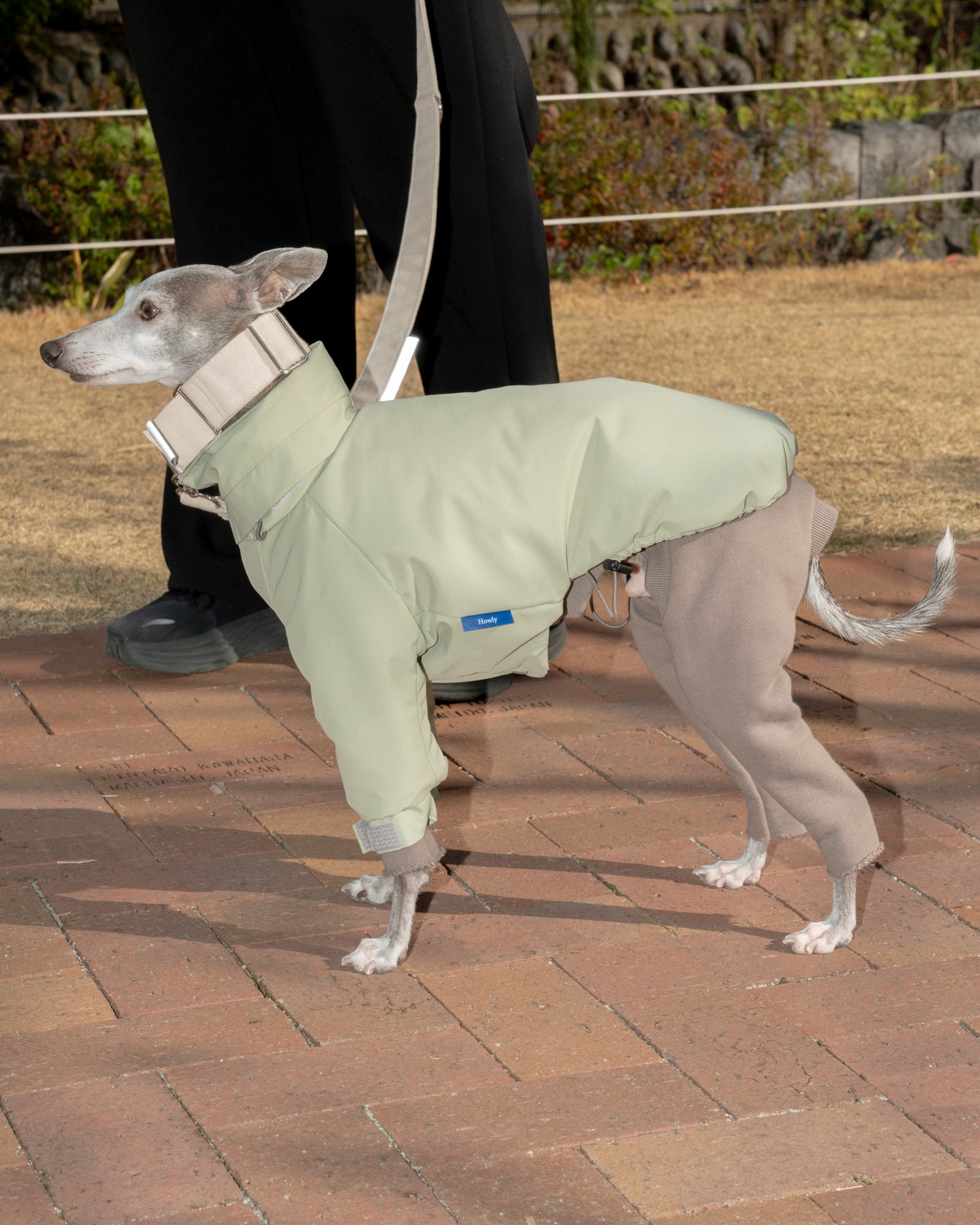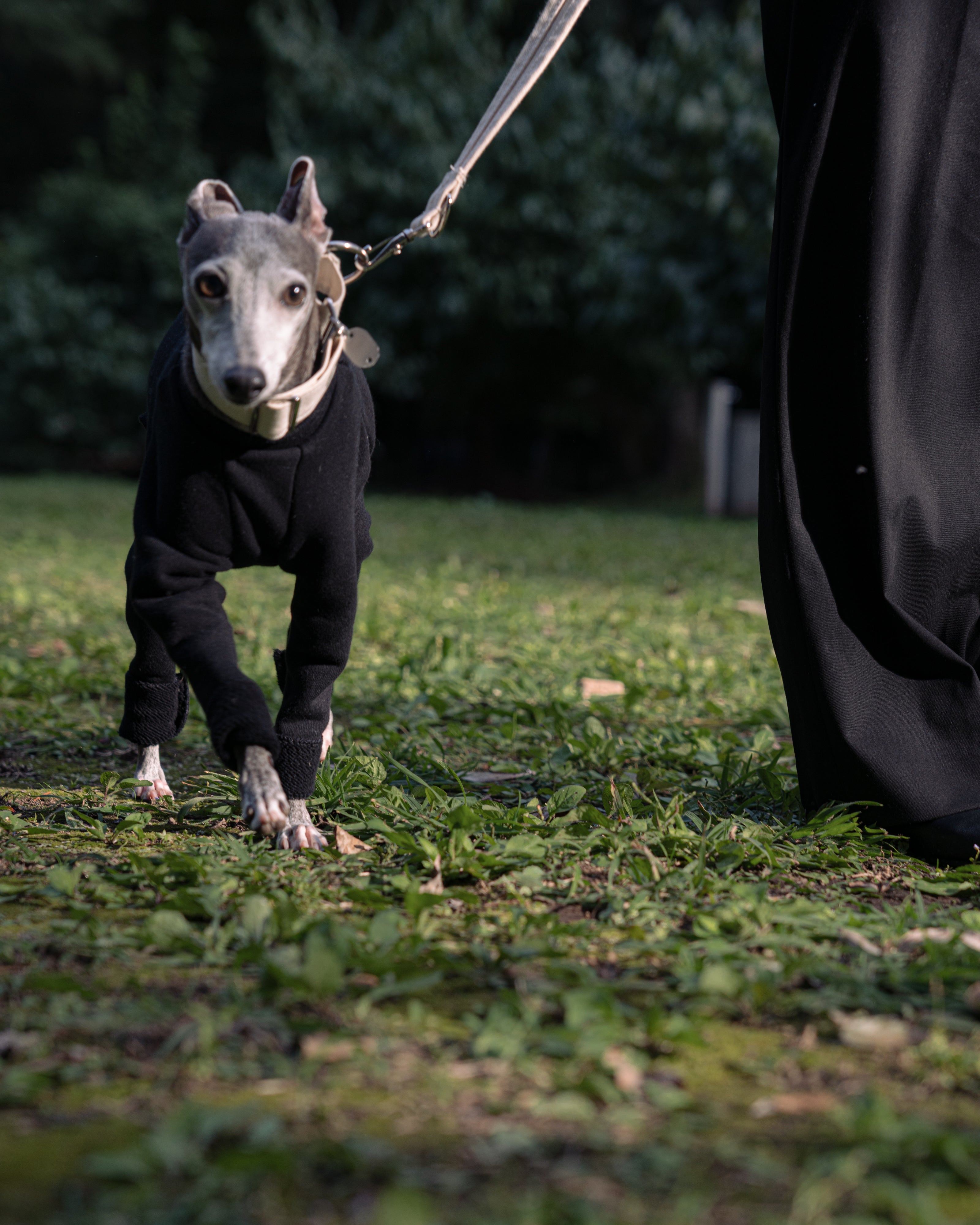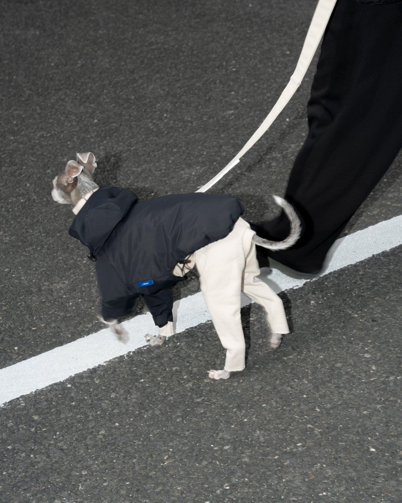 着脱時に酷使される首元にはVガゼットを採用し、ヨレれにくくかつ伸縮性を高めています。また、裏パイル仕様で肉厚な生地は空気を含みやすく、冬の寒さから愛犬を守ります。